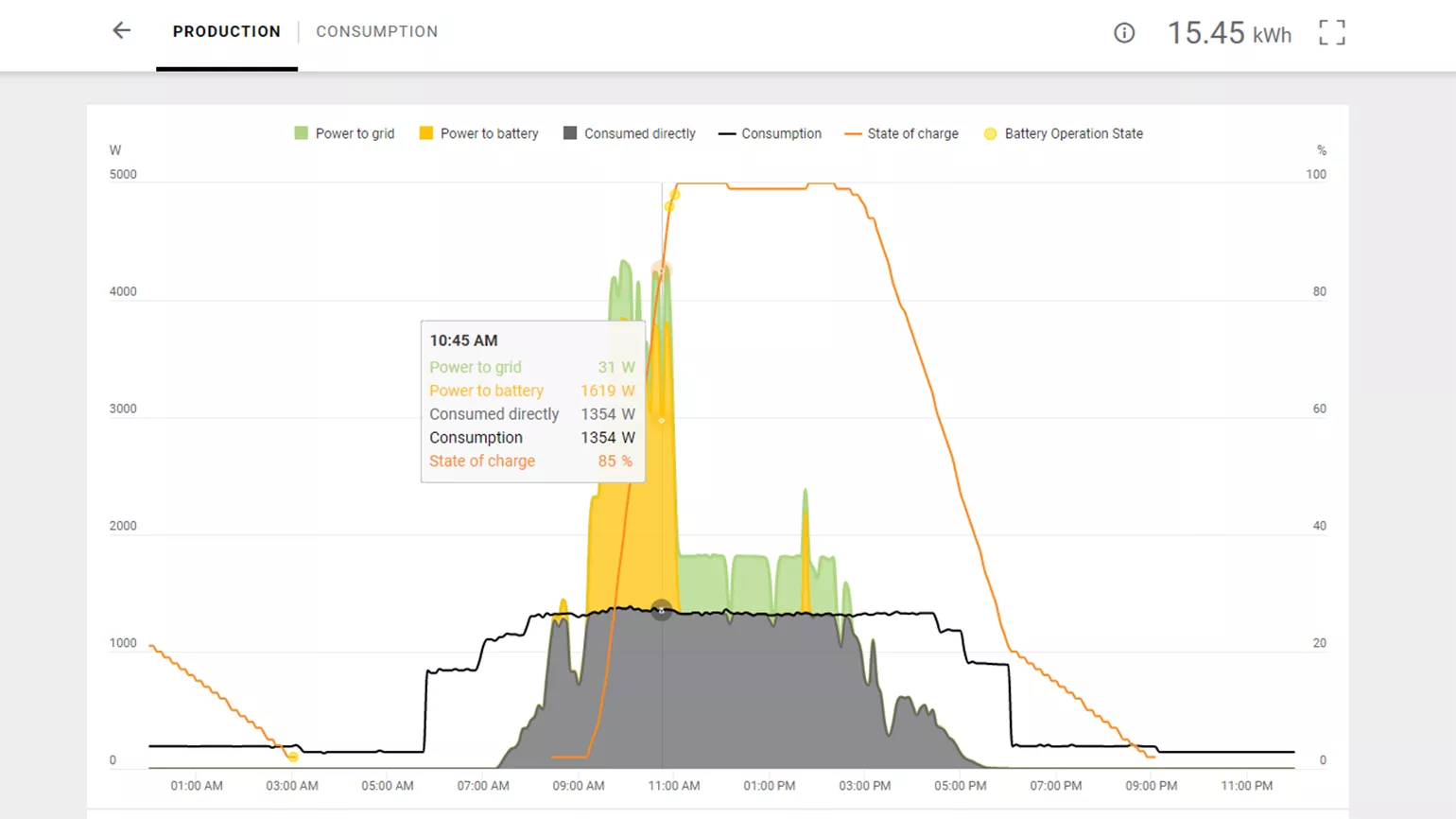 More specifically, this means that the battery is charged and discharged at certain times in order to reserve capacity for times of the day when the more expensive electricity rates are in force. For example, if the electricity tariff is particularly high in the evening, users can ensure that the battery has enough capacity in the evening to cover this expensive phase with self-produced electricity.
